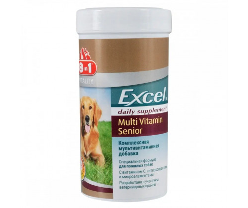 8in1 Excel Multi Vitamin Senior (8в1 Мульти Витамин Синьор) витаминный комплекс для пожилых собак 70 таб - это комплексная витаминно-минеральная добавка, специально разработанная с учетом потребностей стареющего организма. Сбалансированная формула необходимых витаминов и микроэлементов помогает предотвратить проблемы, связанные с неполноценностью рациона и поддерживает иммунную систему, что особенно важно для стареющих собак.
