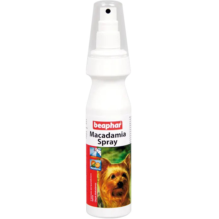 Beaphar Macadamia Spray (Беафар Макадамия) спрей - кондиционер восстанавливающий для шерсти собак и котов - спрей с маслом австралийского ореха для собак и кошек с сухой шерстью. Предназначен для ухода за ломкой, тусклой и жесткой шерстью животных, а также за шерстью, которая имеет нездоровый вид.