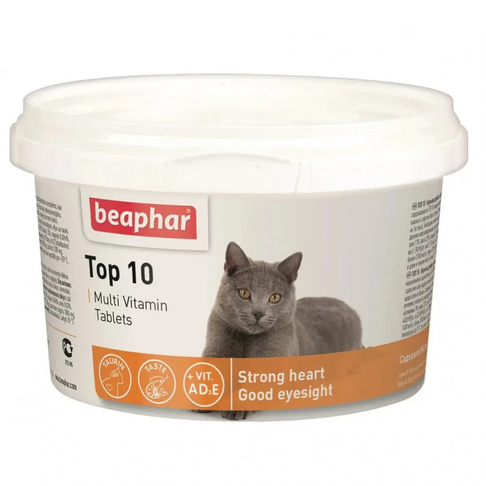 Beaphar Top 10 Cat (Беафар Топ 10) витамины для котов универсальные 180 таблеток - отлично подойдут для поддержания хорошего здоровья и профилактики заболеваний животного.