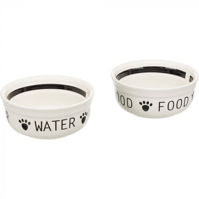 Две керамические миски на подставке для собак и кошек Trixie Eat on Feet (Трикси) 15х15 см 2х600 мл - отлично подойдет для кормления питомцев в любых условиях. Миска подходит как для корма так и для воды, а структура миски позволит применять ее для любых пород. Материал абсолютно безопасен для животных, что делает товар одним из важнейших приобретений для питомца.
