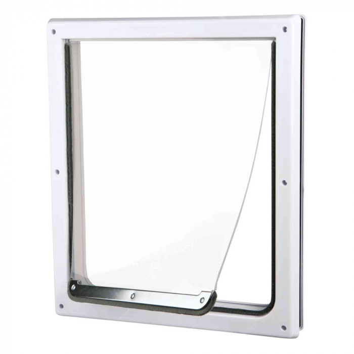 Благодаря своей конструкции дверка может быть легко установлена на Ваших дверях. Дверка крепкая и прочная, изготовлена из качественного пластика и закрывается с помощью съёмной металлической задней панели для защиты от ветра, непогоды и незванных гостей.