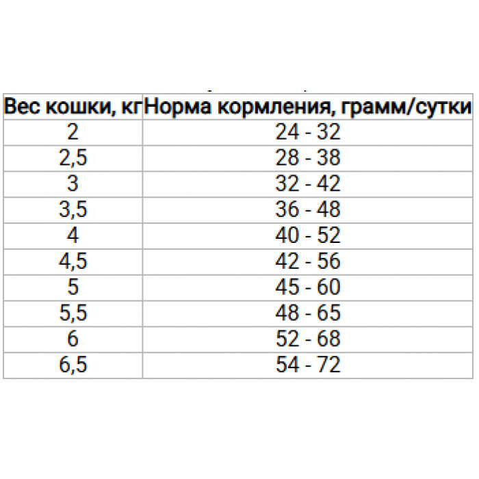 - Содержит таурин — незаменимую для работы сердца и органов зрения аминокислоту, которая самостоятельно не вырабатывается в организме кошек