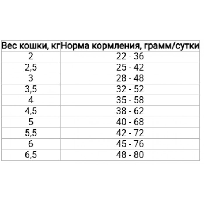 - Содержит таурин — незаменимую для работы сердца и органов зрения аминокислоту, которая самостоятельно не вырабатывается в организме кошек