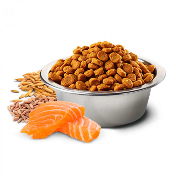 Состав: свежее мясо лосося (20%), обезвоженное мясо лосося (20%), спальта (12%), овес (12%), рыбий жир (из сельди), обезвоженный белок сельди, сушеная свекольная пульпа, сушеная морковь, люцерна фруктоолигосахариды, дрожжевой экстракт (источник манно-олигосахаридов), сушеный банан (0.5%), сушеный киви (0,5%), сушеное манго (0,5%), сушеная папайя (0,5%), сушеный ананас, сушеный ананас семена псилиума, хлорид натрия, сухие пивные дрожжи, куркума, экстракт алоэ вера, глюкозамин, хондроитин сульфат.