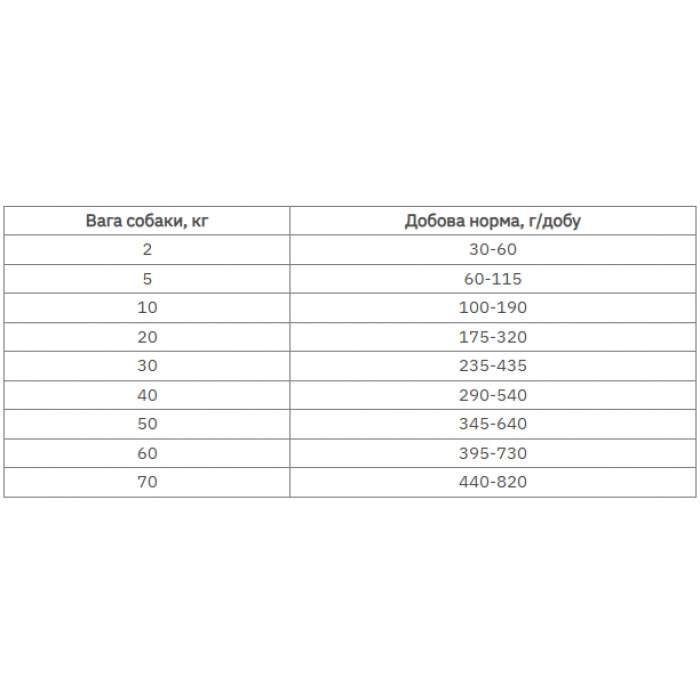 - Рекомендованное количество корма носит относительный характер и требует корректировки для поддержания оптимальной массы тела (указанные на упаковке товара).