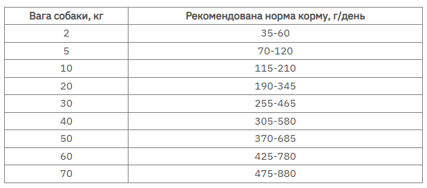 • Суточное количество корма может варьироваться в зависимости от породы, физической нагрузки, течения и тяжести заболевания.