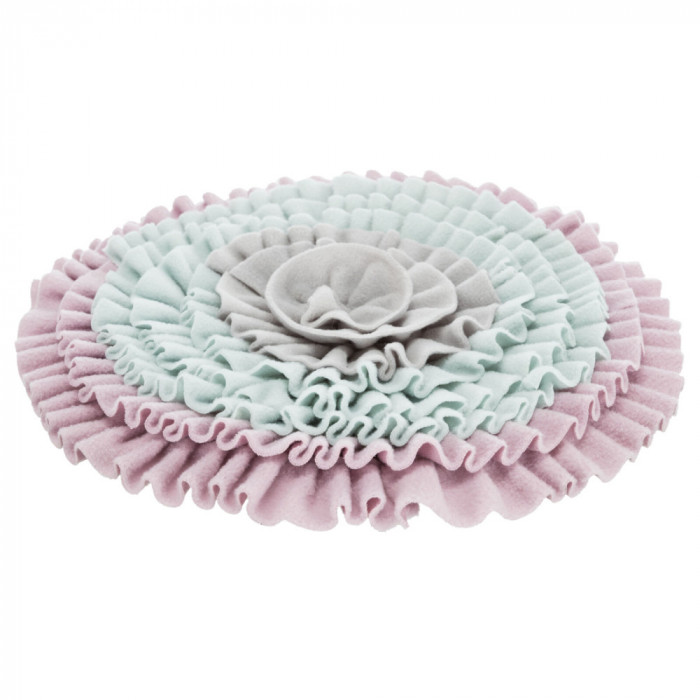 Коврик разработан специально для щенков и котят, чтобы удовлетворить их жажду приключений и вознаградить вкусными сюрпризами. Игрушка-стратегия состоит из нескольких слоев ткани, которые образуют плотный ковер. Между отдельными слоями можно спрятать лакомство, которое потом ваш любимец должен вынюшать. Игра также может быть использована для ежедневного кормления и особенно подходит для любимцев, которые склонны быстро поглощать пищу.