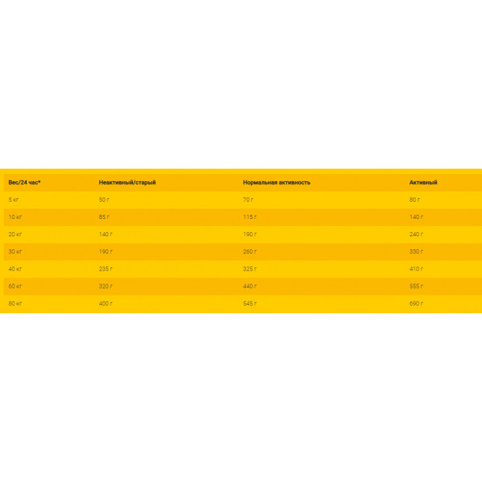 *Рекомендуемое количество корма на питомца в день.