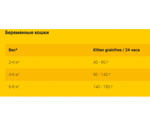 Для беременных кошек: обратите внимание, что потребность в еде во время беременности зависит от количества котят. Однако, Вы должны избегать перекорма, чтобы избежать трудностей при родах и нарушений во время лактации. Для лактирующих кошек: не ограничивайте Вашу кошку в определенном количестве корма, так как потребность в пище зависит от количества котят и молочной линии.