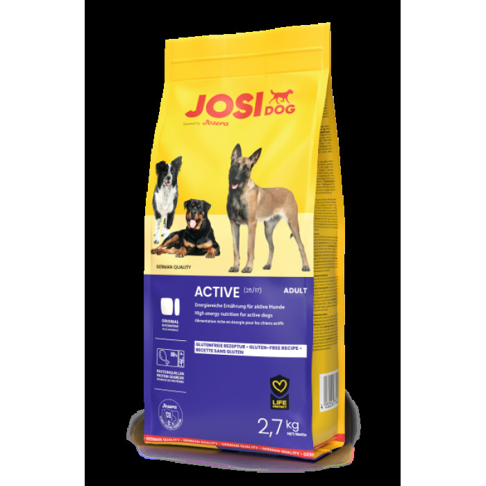 JOSERA JosiDog Active высокоэнергетический корм для активных взрослых собак. Питательная безглютеновая рецептура обеспечивает достаточное количество энергии для очень активных и спортивных собак.