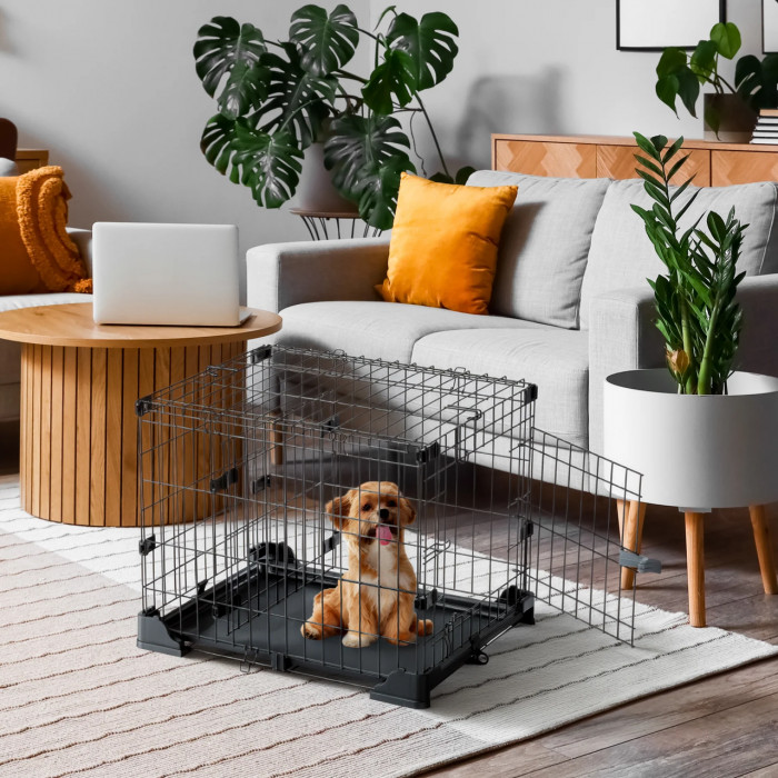 Герметичный выдвижной поддон позволяет легко поддерживать чистоту, а надёжный замок предотвращает случайное открытие двери. Благодаря встроенной ручке клетку удобно переносить в сложенном виде. Доступная в пяти размерах, DOG ZONE подходит для всех пород и идеальна для дома, тренировки щенков и перевозки в багажнике автомобиля.