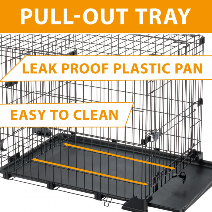 Герметичный выдвижной поддон позволяет легко поддерживать чистоту, а надёжный замок предотвращает случайное открытие двери. Благодаря встроенной ручке клетку удобно переносить в сложенном виде. Доступная в пяти размерах, DOG ZONE подходит для всех пород и идеальна для дома, тренировки щенков и перевозки в багажнике автомобиля.