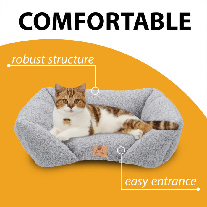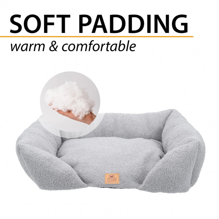 Прямоугольная форма с низким передним краем облегчает вход и выход животного, а высокие бортики создают ощущение защищённости и уюта, превращая диванчик в мягкое и надёжное укрытие. Мягкий наполнитель обеспечивает дополнительное удобство и комфорт, обволакивая вашего любимца теплом и заботой.
