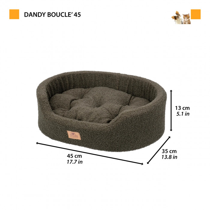 Полностью обитая мягкой синтетической тканью букле, тёплая и приятная на ощупь, кровать Dandy Bouclé легко вписывается в любой интерьер. Она идеально подходит для холодного времени года и для животных, чувствительных к низким температурам. Лежак можно стирать вручную при 30°С, что обеспечивает гигиену и простоту ухода.