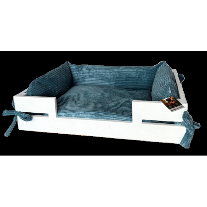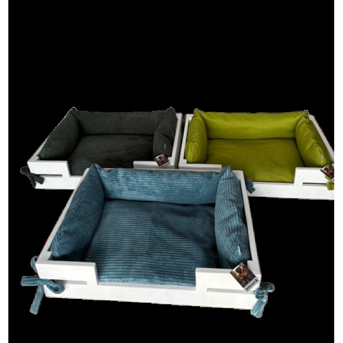 Cшита из мягкой приятной мебельной ткани. Каркас изготовлен из натурального дерева и покрытый краской на водной основе. Лежанка проста в уходе. Чехол легко снимается, его можно стирать в стиральной машине при температуре 30°С в режиме "деликатная стирка".