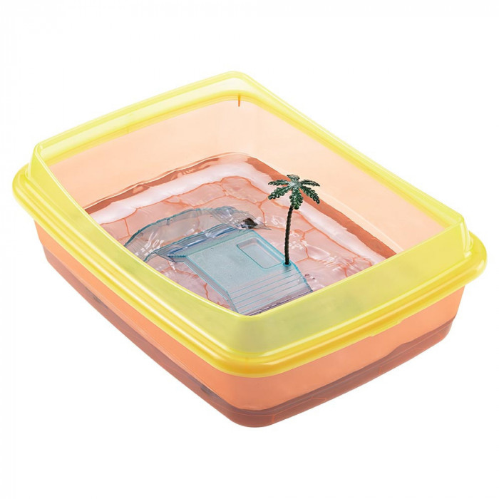 Пластиковая чаша - бассейн для черепах Ferplast Tortugas (Ферпласт Тортугас) - чаша для черепах из цветного пластика, состоящая из прямоугольного поддона и рамки, которую можно снять на время уборки. Чаша идет в комплекте с декоративным островом с присосками для надежной фиксации, а также небольшой пальмой; остров оборудован ступеньками. Пластиковая рамка предотвращает проливание воды. Чаша идеально подходит для содержания нескольких небольших рептилий.