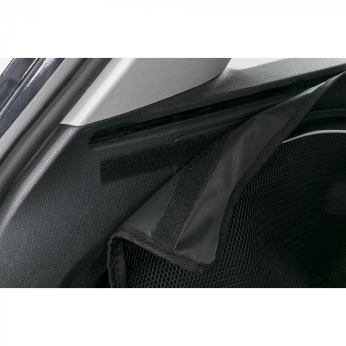 - Крепиться к подголовникам и к боковым стенкам с помощью ремней и липучек