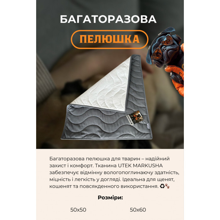 Подстилка - пеленка многоразовая для собак и котов Мarkusha (Маркуша) - надежная защита и комфорт. Идеальна для котят и щенков для ежедневного использования.