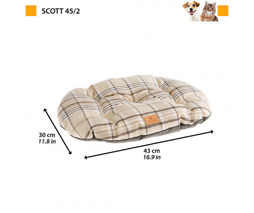 Подушка - мягкое место для кошек и собак Ferplast Scott (Ферпласт Скот) - это очень мягкая двухсторонняя подушка, представленная в трёх разных цветах, воплощающих идеальный шотландский стиль: мятно-зелёный, бежевый или голубой. Все ткани с бархатистой поверхностью очень мягкие и приятные на ощупь, ваш пушистый друг непременно почувствует себя на такой подушке уютно и комфортно!