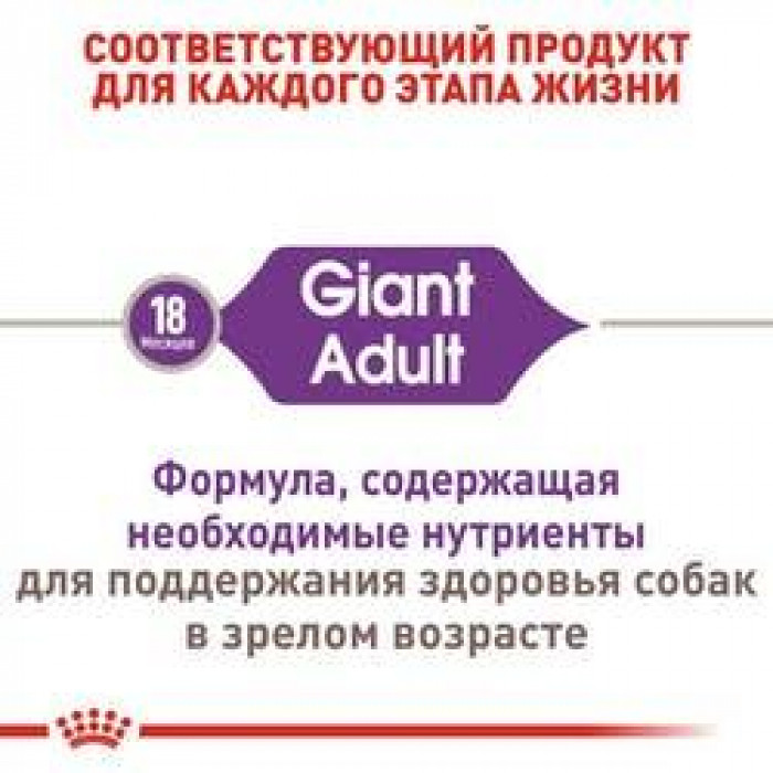 Royal Canin Giant Adult (Роял Канин Джаинт Эдалт) сухой корм для взрослых собак гигантских пород - полнорационный сухой корм для взрослых собак гигантских размеров (вес взрослой собаки более 45 кг) в возрасте от 18/24 месяцев.