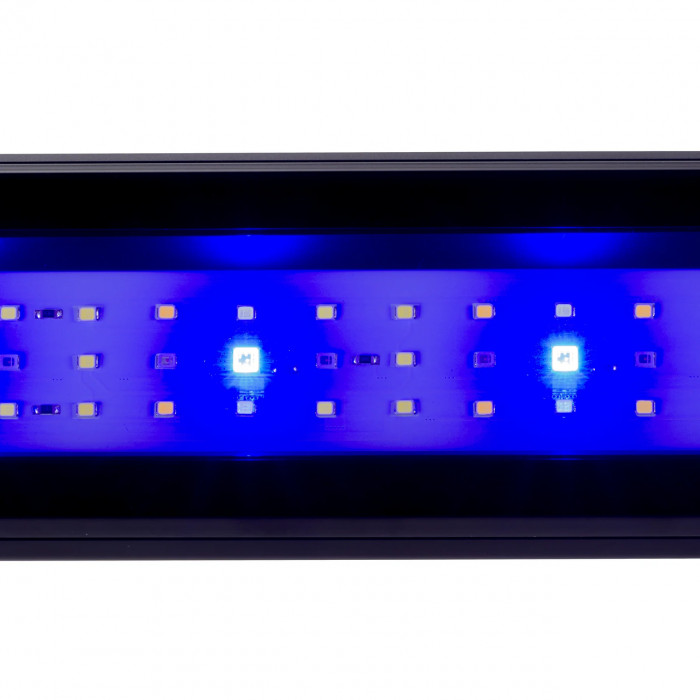 Такой сбалансированный спектр освещения воссоздаёт природный солнечный свет, стимулирует рост водных растений, активирует процессы фотосинтеза и естественно подчёркивает синие и красные оттенки рыб и растений.