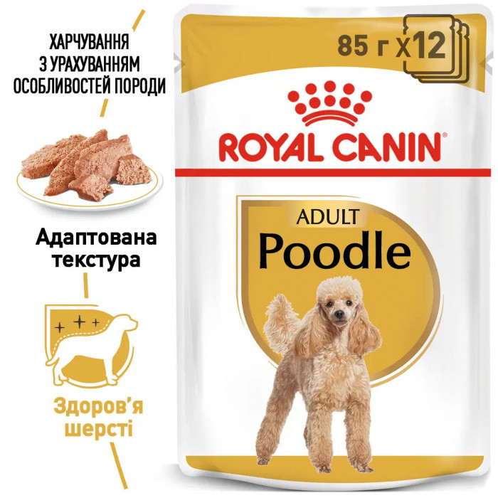 Вологий корм для собак Royal Canin Poodle Loaf (Роял Канін) паштет для породи Пудель 85 г. х 12 шт. - полнорационный влажный корм для взрослых собак породы пудель в возрасте от 10 месяцев.